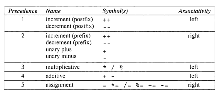 Operator Precedence and Associativity